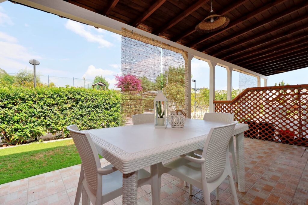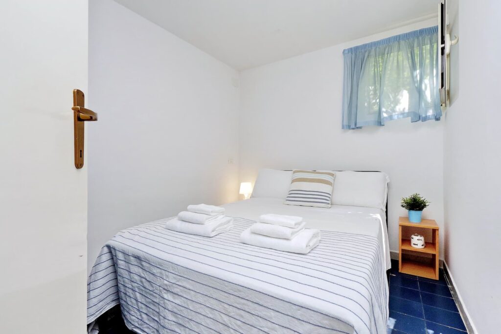E’ composto da area giorno con angolo cottura, 2 stanze da letto (camera matrimoniale e seconda camera con 3 letti singoli), bagno con box doccia, veranda esterna con tavolo e sedie.