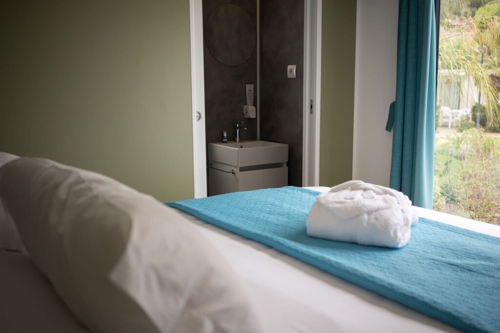 La camera matrimoniale diventa una suite super riservata, con accesso diretto alla zona relax, dove potrete godervi l’esclusiva vasca idromassaggio, per il massimo del comfort.
